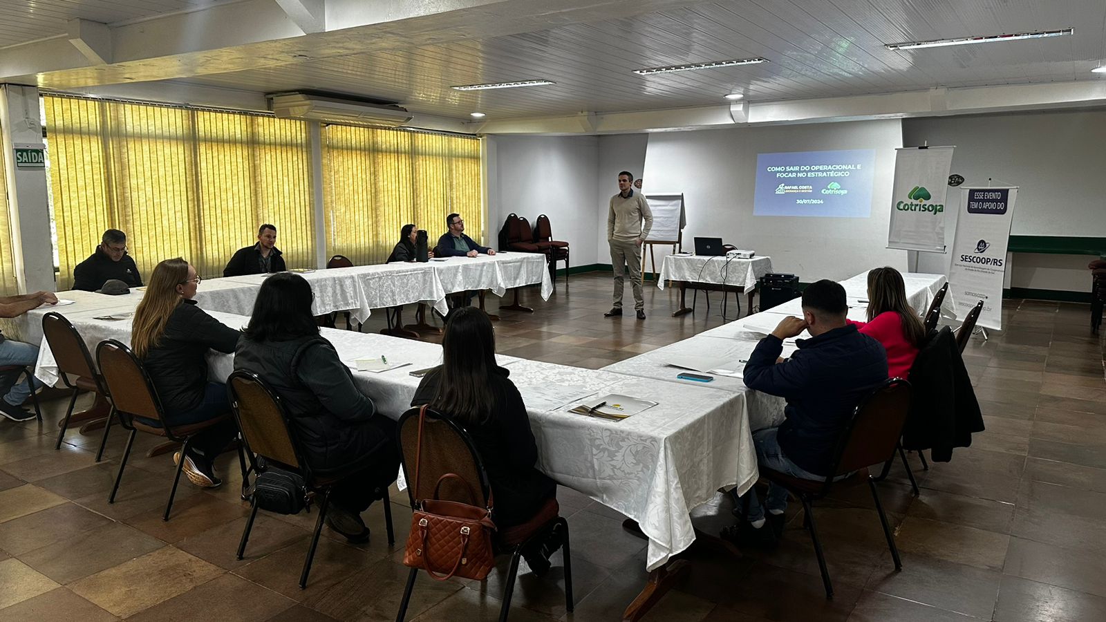 Mais de 30 colaboradores de diversos setores da Cotrisoja participaram entre os dias 23 e 30 de julho de uma capacitação focada em gestão estratégica. Denominado “Como sair do operacional e focar no estratégico” o treinamento que foi realizado com apoio do Sescoop/RS, teve carga horária total de 8 horas e foi ministrado por Rafael Costa, especialista em gerenciamento de projetos e inteligência empresarial pela FGV e que trabalha com liderança há mais de uma década.