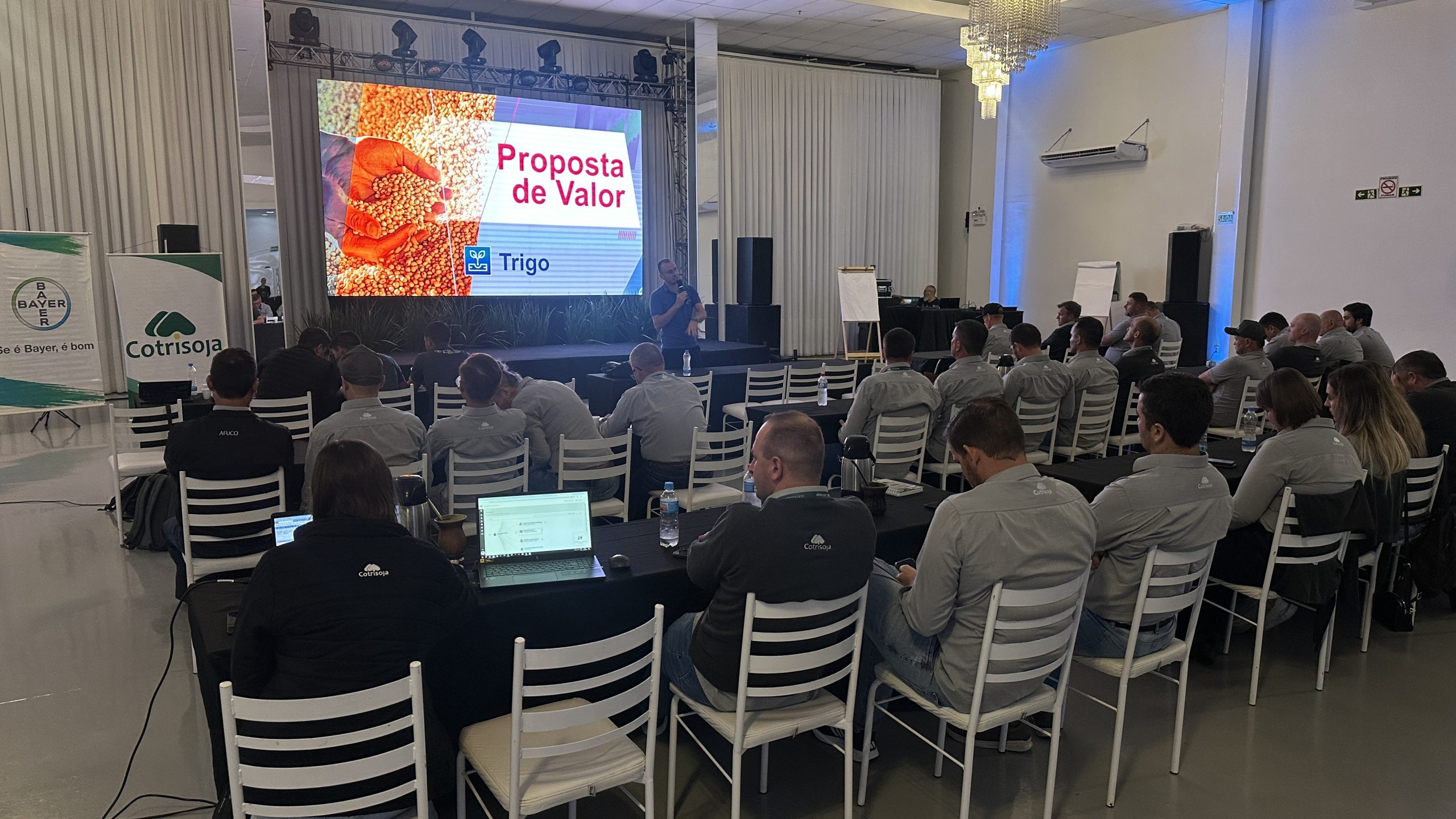 O encontro também serviu para alinhar diretrizes para o próximo ciclo agrícola, com foco em inovação, capacitação contínua e no fortalecimento da parceria entre Bayer e Cotrisoja. Foram apresentados dados de mercado visando a próxima safra e alinhadas ações que serão realizadas conjuntamente.