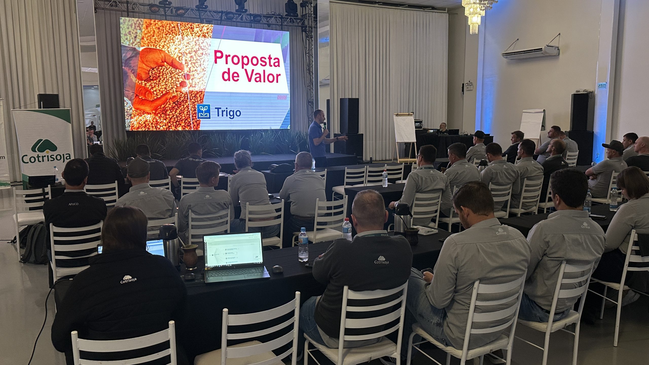 A Cotrisoja, em parceria com a Bayer, promoveu na terça-feira (06/05), em Passo Fundo, um evento técnico voltado ao departamento agronômico e gerências das unidades da cooperativa, com foco na avaliação de desempenho da safra 2024/2025, especialmente no que diz respeito ao portfólio das soluções Bayer que são disponibilizadas aos associados. O encontro também contou com a presença do gerente regional sul da Bayer, Rogerio Tomedi Junior.