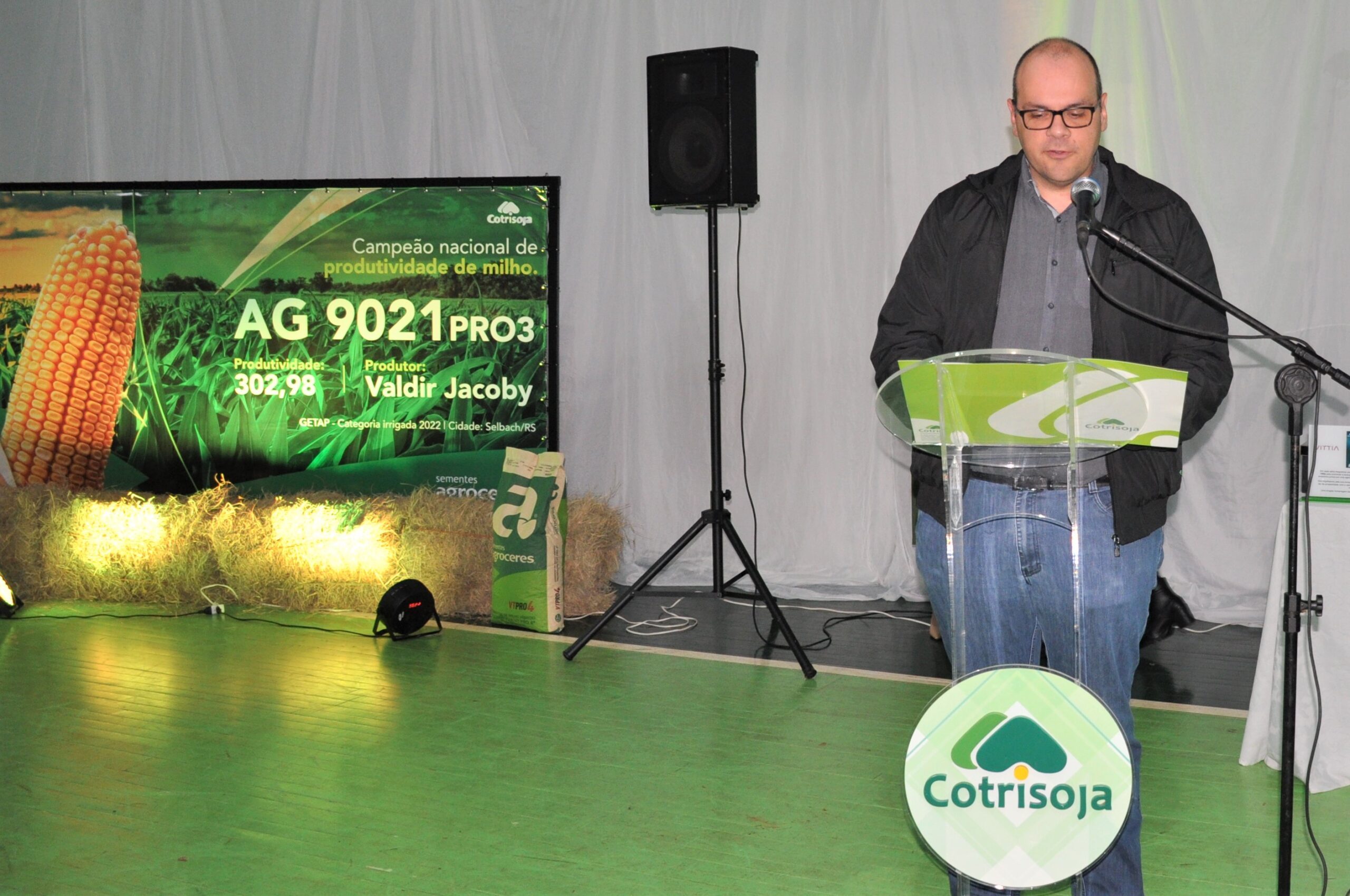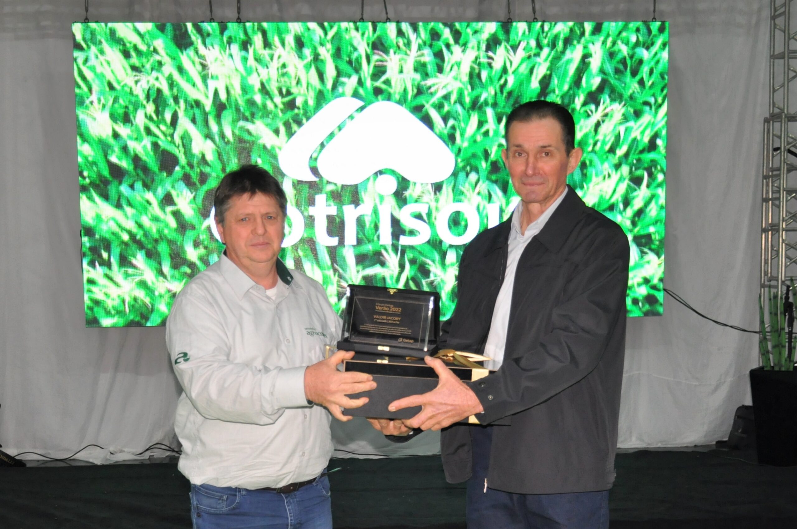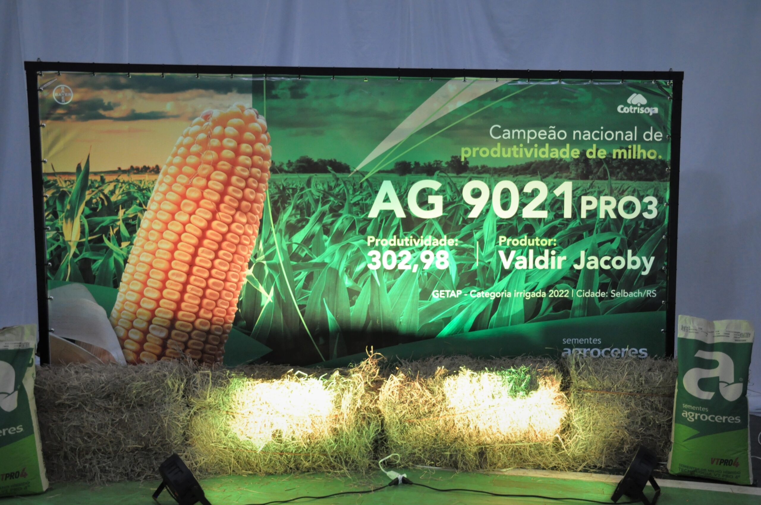 Neste ano, tivemos a honra de um associado da cooperativa, o senhor Valdir Jacoby, Linha Floresta, Selbach, alcançar a nível nacional este marco de produtividade, com 302,98 sc./ha em milho irrigado, tornando-se campeão nacional do Getap 2022.