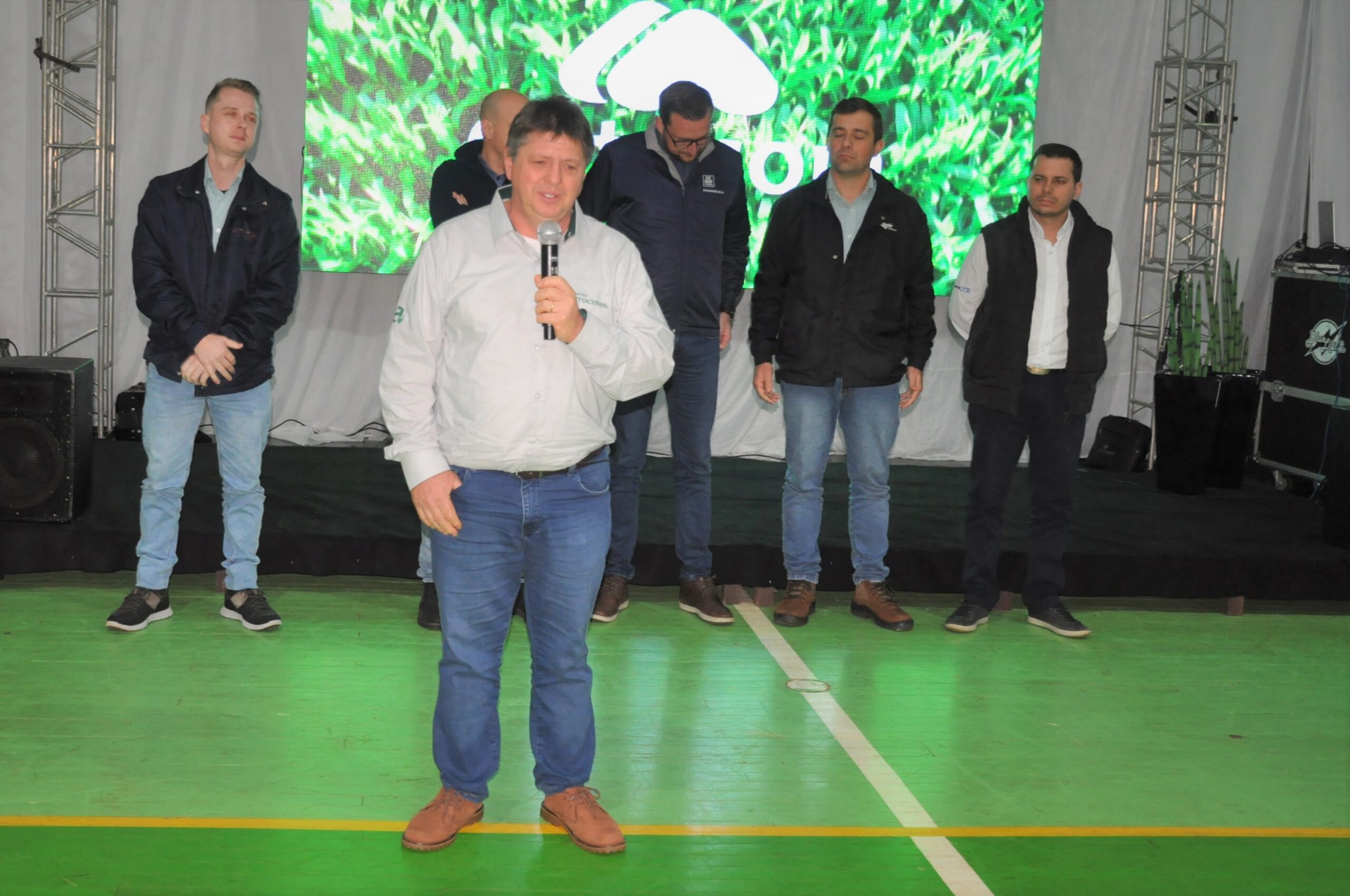 Na ocasião, houve o pronunciamento dos representantes dos apoiadores do evento. Tiveram a palavra da Sementes Agroceres, Flávio Carlet; Bayer, Jones Gelain; da Mosaic, Eduardo Sacaro; da Yara, Henrique Sacon; da Timac Agro, Ricardo Scalcon e do Grupo Vittia, Cléber Cadore. Além do coordenador de insumos, Cristiano Muller e do vice-presidente Borghetti, que encerrou o cerimonial.
