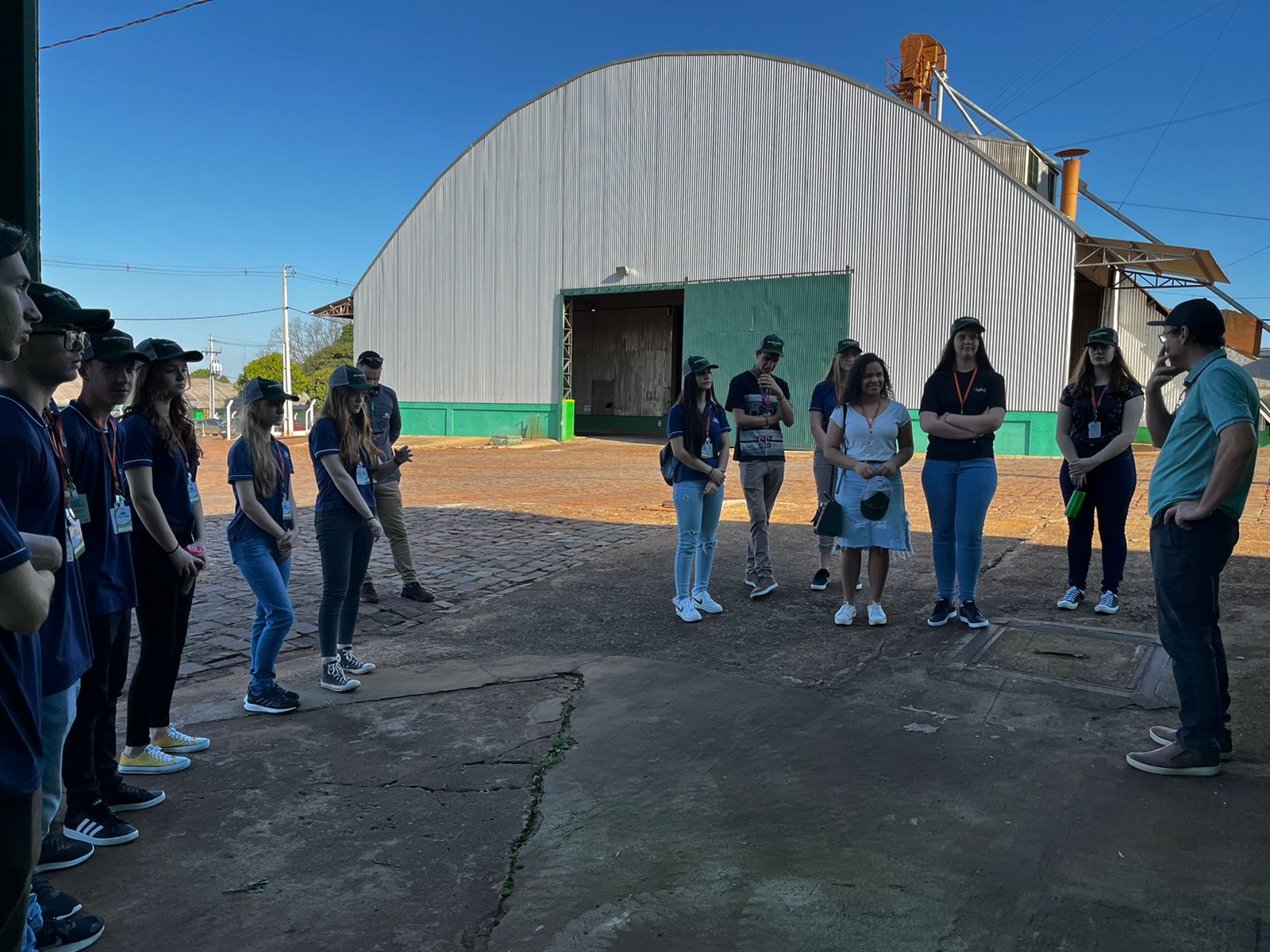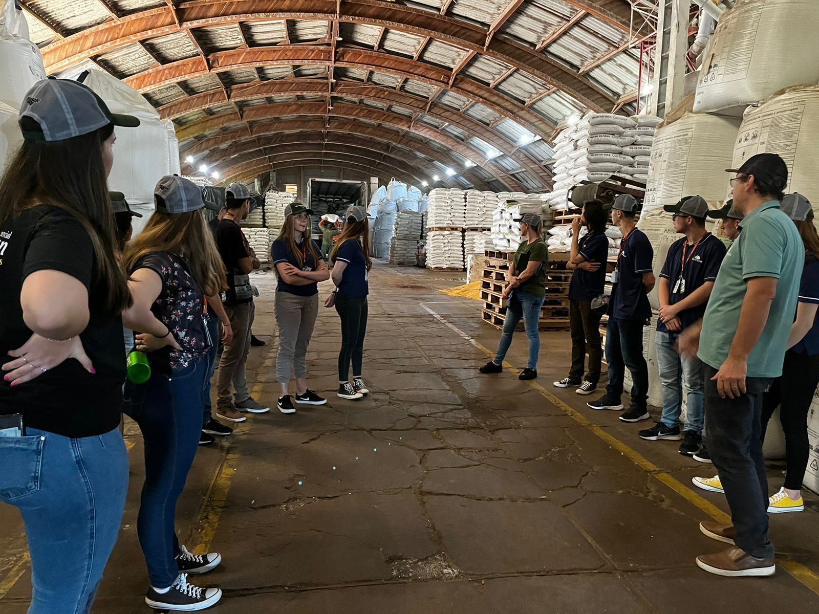 Posteriormente, a turma foi direcionada às instalações externas, conhecendo a área de recebimento de grãos e a fábrica de rações.