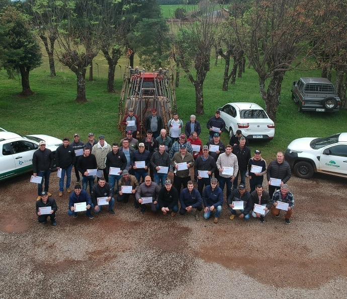 Os técnicos da Cotrisoja vem realizando o curso de aplicação de herbicidas e hormonais junto aos associados, onde na oportunidade, é explicado a problemática envolvendo os produtos hormonais, apresentado todas as diretrizes relacionadas à comercialização e uso dos produtos, tratado do manejo dos produtos hormonais, tecnologia de aplicação, regulagem e calibração de pulverizadores, além da segurança do trabalhador, através do uso do EPI (Equipamento de Proteção Individual), armazenamento e descarte adequados das embalagens, entre outros temas.